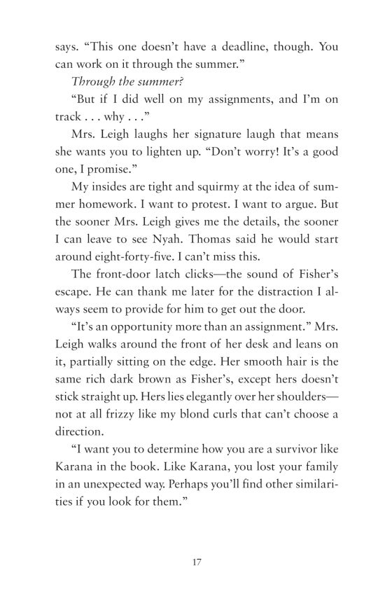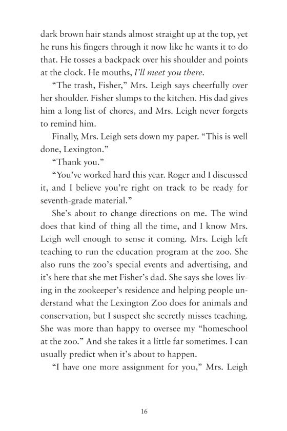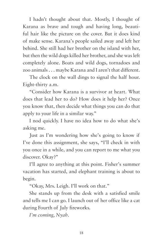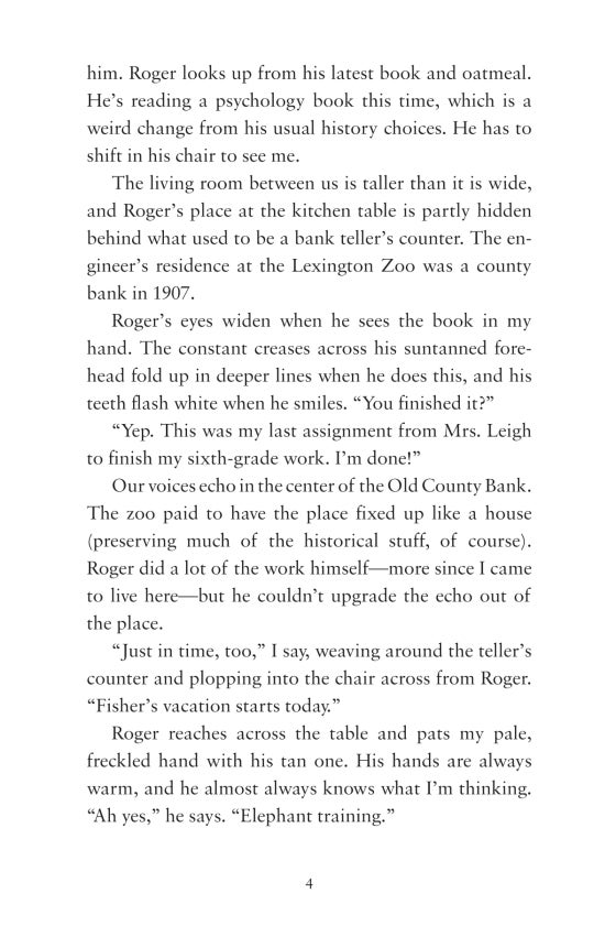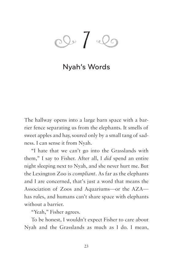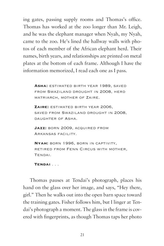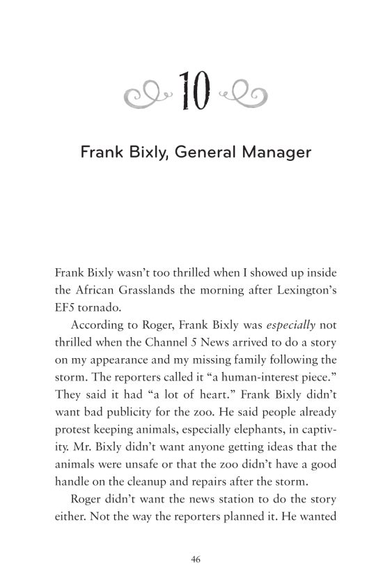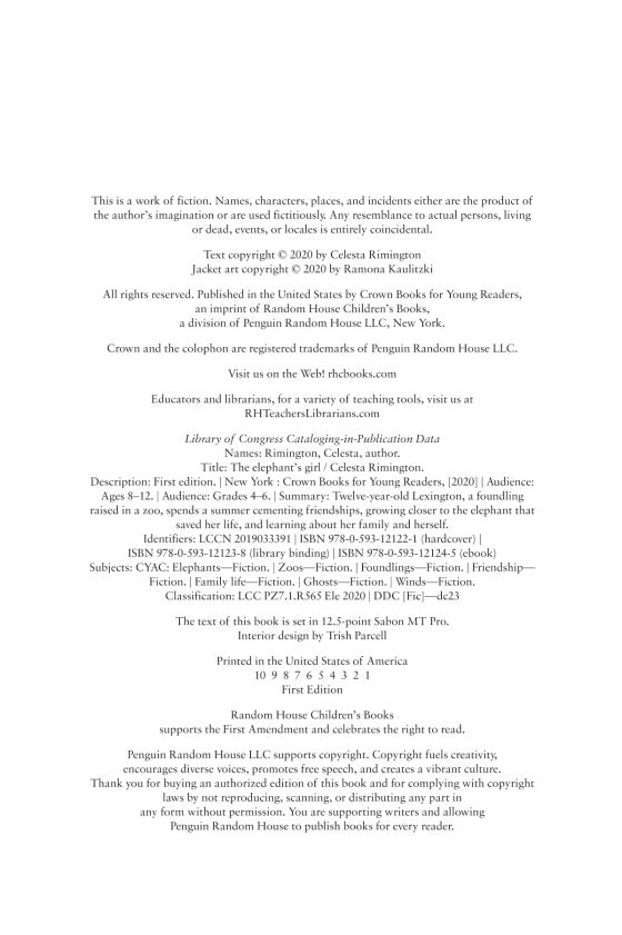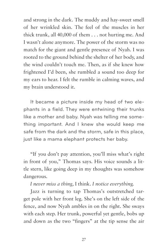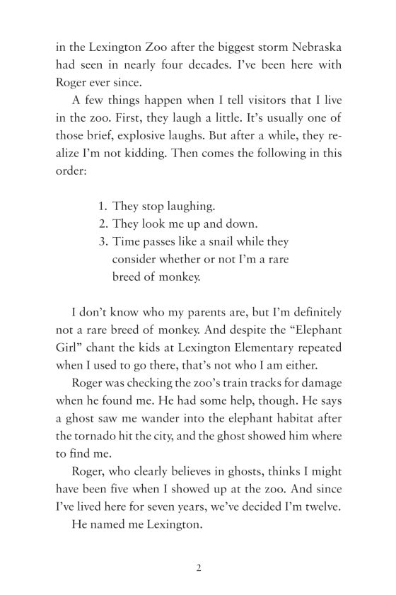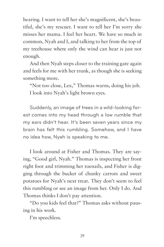 An elephant never forgets, but Lexington Willow can't remember her past. Swept away by a tornado as a toddler, she was dropped in a nearby Nebraska zoo, where an elephant named Nyah protected her from the storm. With no trace of her family, Lex grew up at the zoo with her foster father, Roger; her best friend, Fisher; and the wind whispering in her ear.