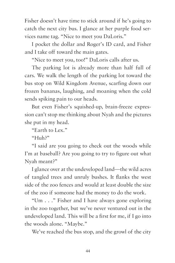 Years later, Nyah sends Lex a telepathic image of the woods outside the zoo. Soon, Lex is wrapped up in an adventure involving ghosts, lost treasure, and a puzzle that might be the key to finding her family. Can Lex summon the courage to discover who she really is--and why the tornado brought her here all those years ago?