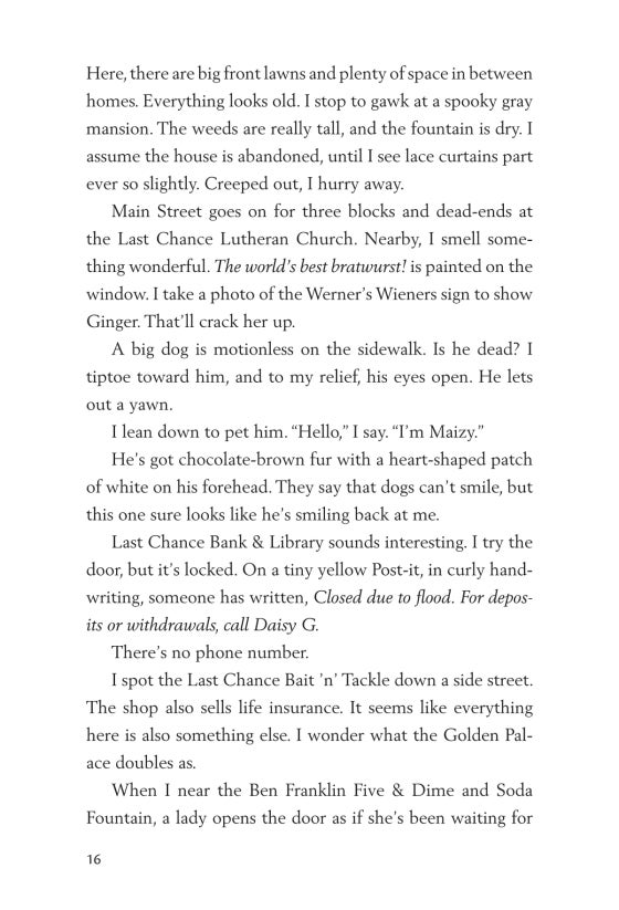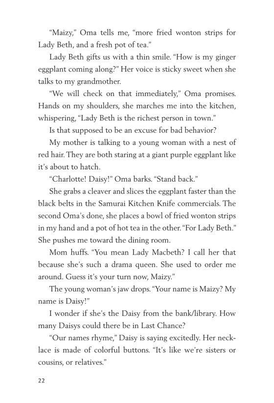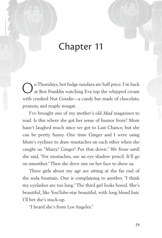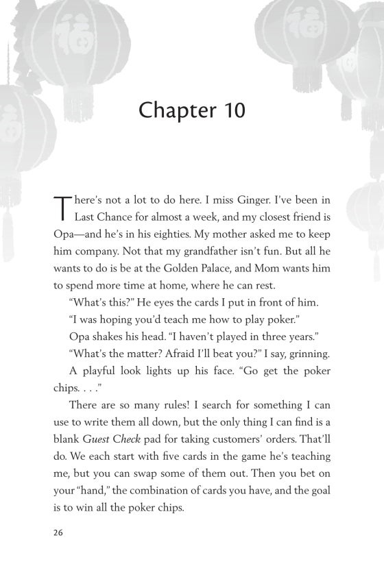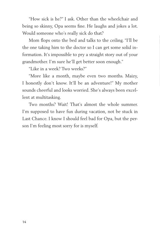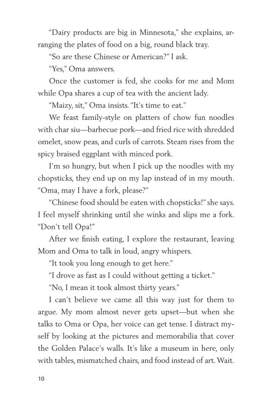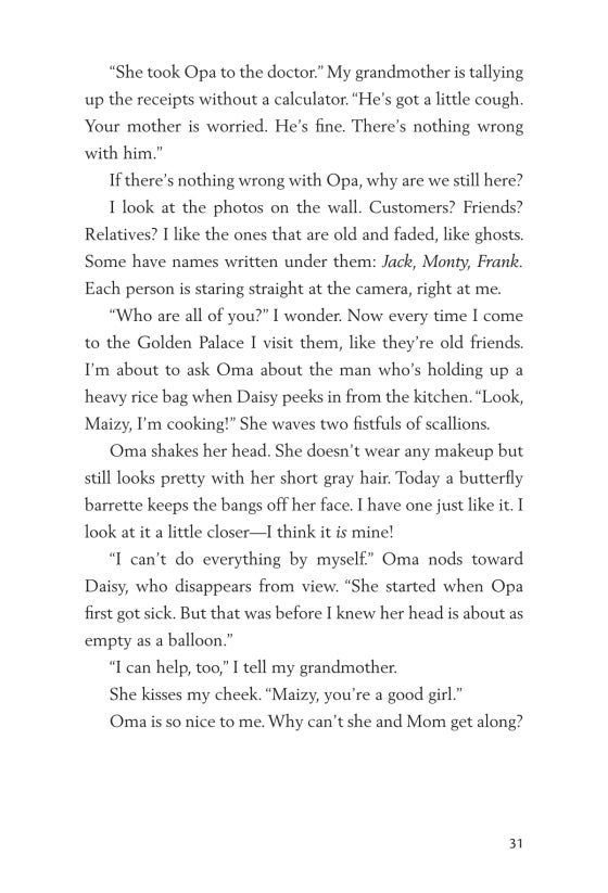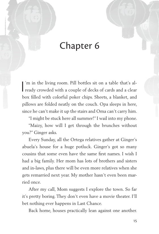 Maizy has never been to Last Chance, Minnesota . . . until now. Her mom’s plan is just to stay for a couple weeks, until her grandfather gets better. But plans change, and as Maizy spends more time in Last Chance and at the Golden Palace—the restaurant that’s been in her family for generations—she makes some discoveries.For instance: