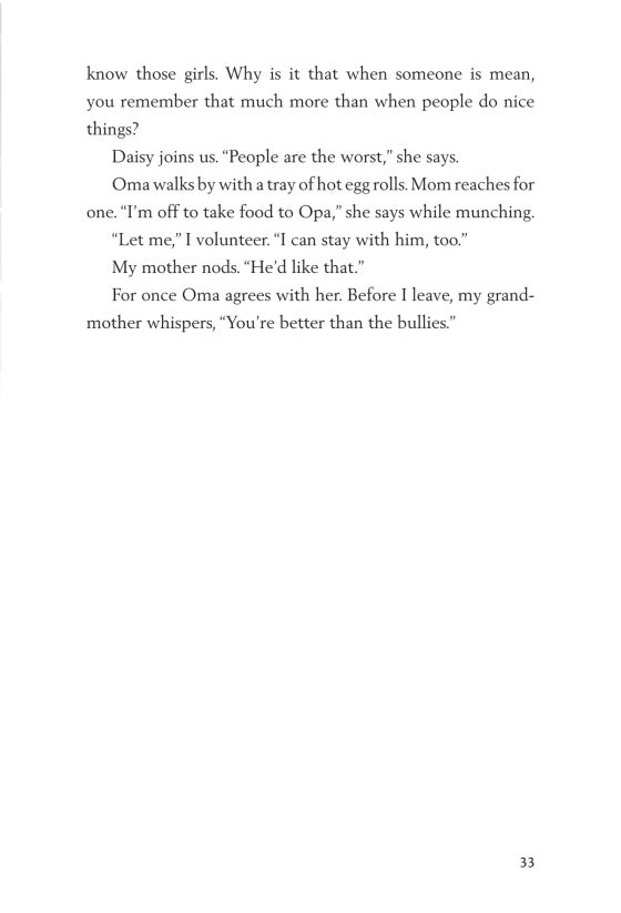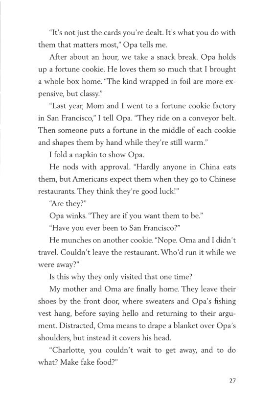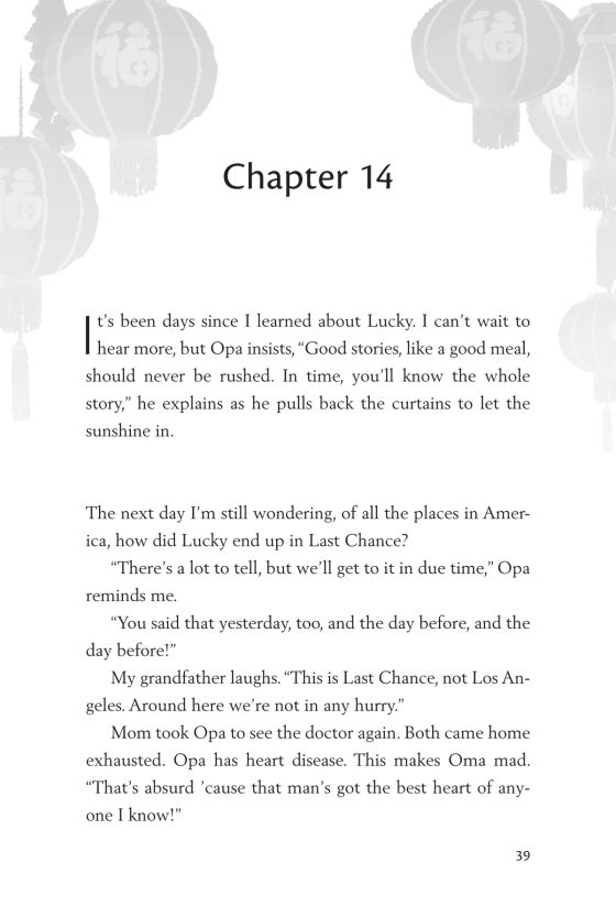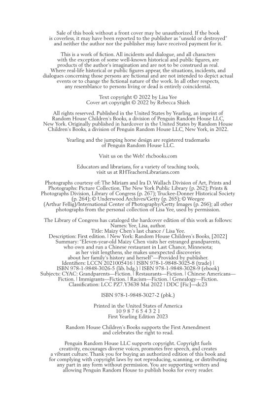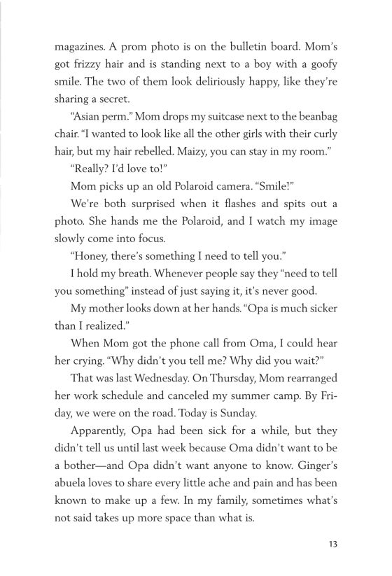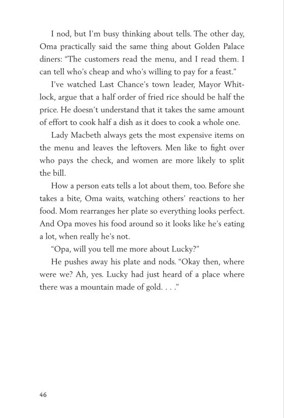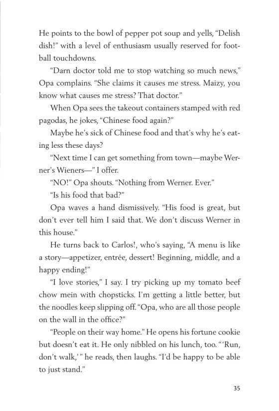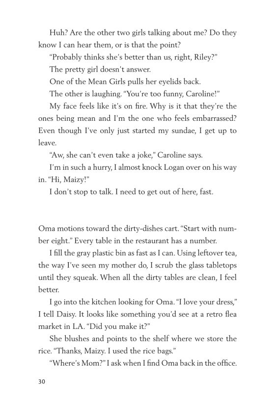 Maizy has never been to Last Chance, Minnesota . . . until now. Her mom’s plan is just to stay for a couple weeks, until her grandfather gets better. But plans change, and as Maizy spends more time in Last Chance and at the Golden Palace—the restaurant that’s been in her family for generations—she makes some discoveries.For instance: